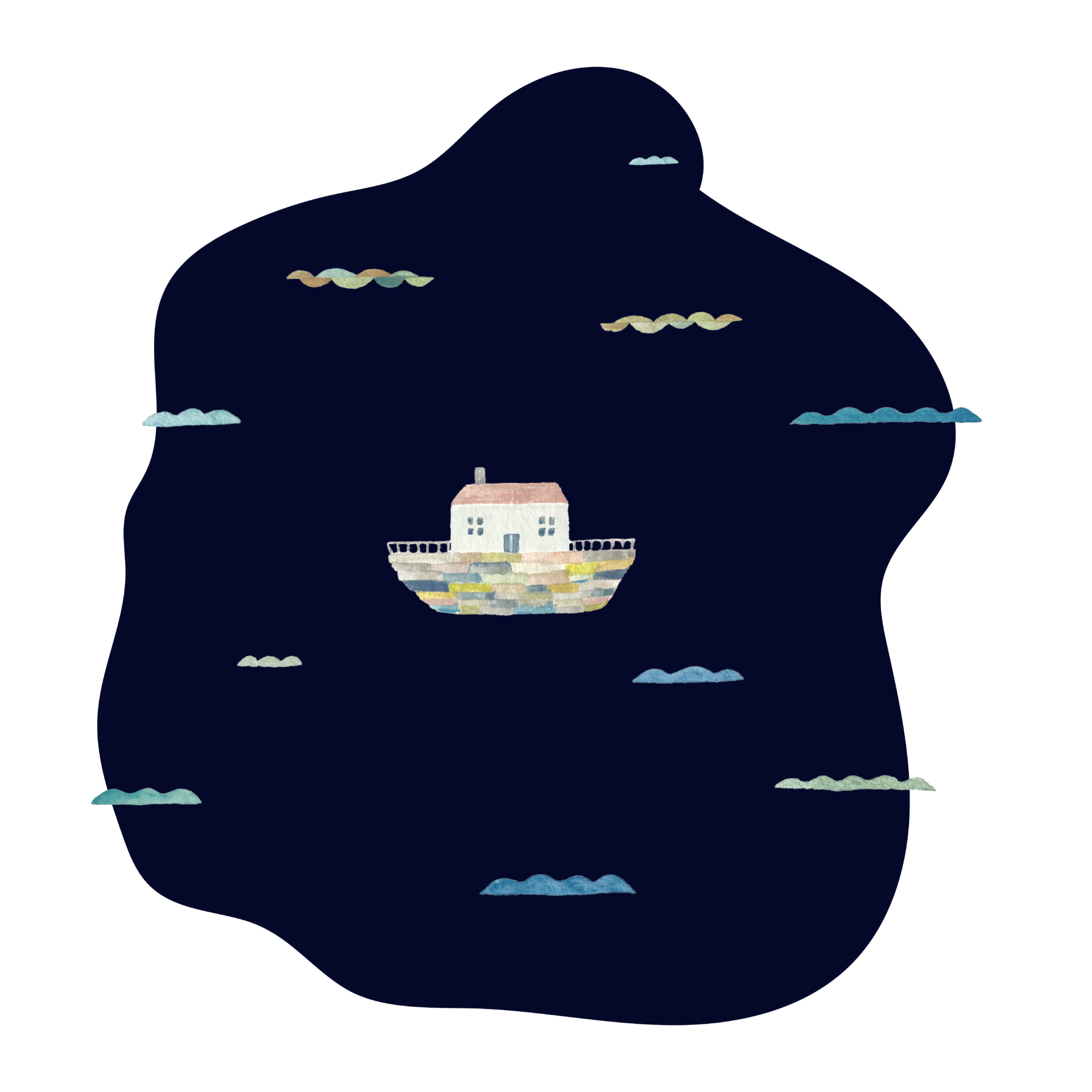 方舟の周りにカラフルな小鳥たちがやってきて